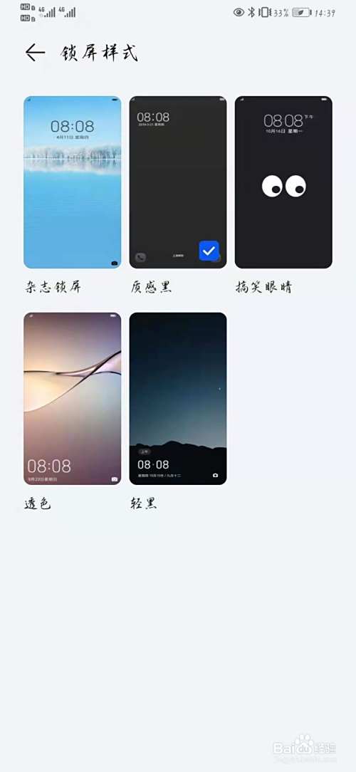 在锁屏样式设置页面,选择【杂志锁屏】选项,如下图所示。
