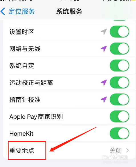 在页面中,找到【重要地点】,点击进入页面后,把重要地点的开关按钮关闭,如图所示。