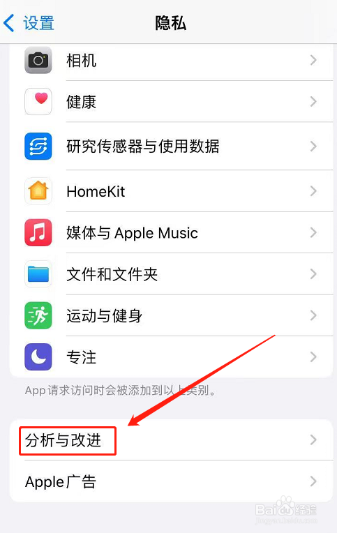 苹果手机必须关掉分析与改进、常去地点,应用访问的部分权限。