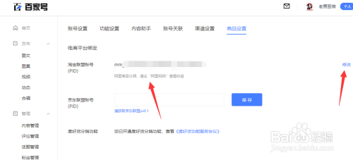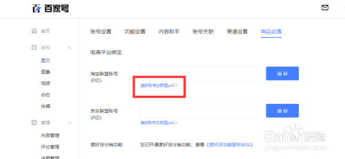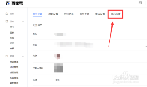 打开电脑端的百家号,点击百家号设置------商品设置。