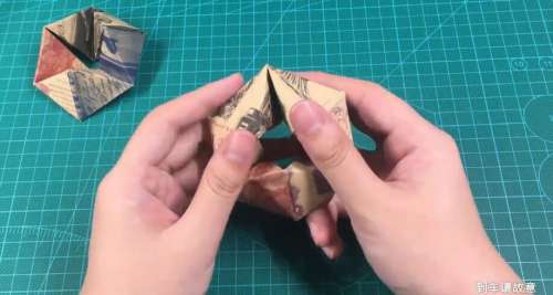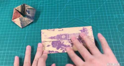 4上下左右两边都往里沿痕迹折出一个四个三角,中间一个平行四边形打开。