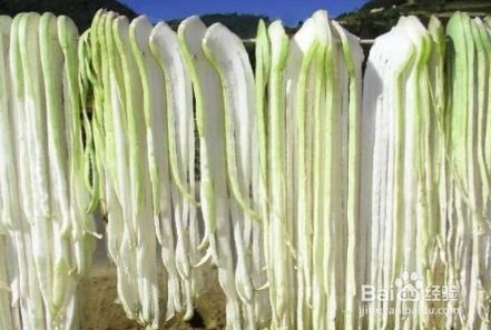 还可以选择在切萝卜时,把萝卜切条时,顶部不切透,让萝卜丝都连在一起,杀好水的萝卜,可以挂在晾衣架或铁丝上晾晒,直至萝卜干晾好为止。