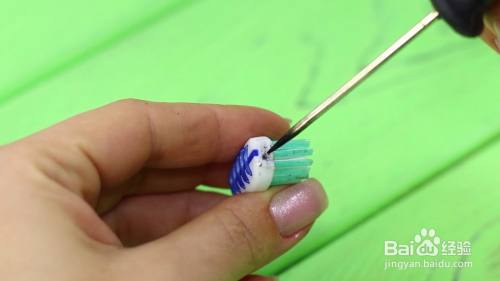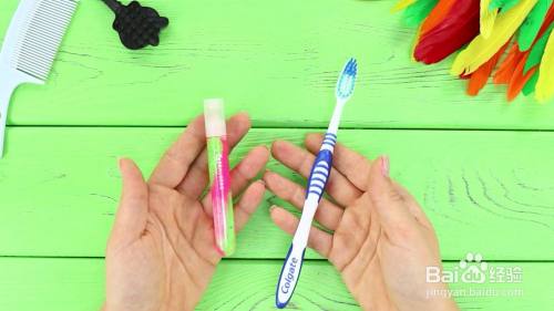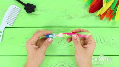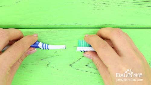 用牙刷将牙刷头去掉,注意操作时别切着自己了。