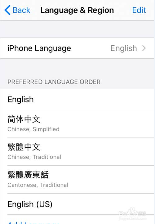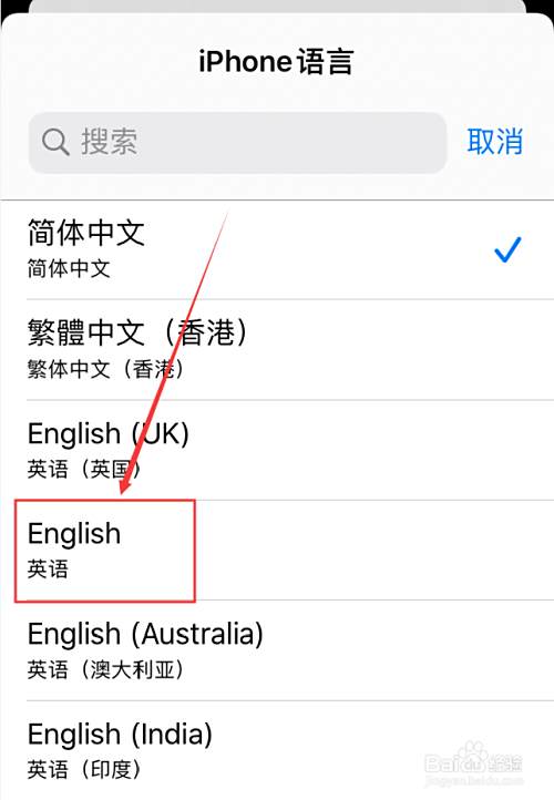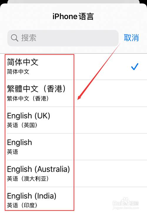 在“iPhone语言”页面中,就能找到可以设置的语言。