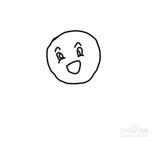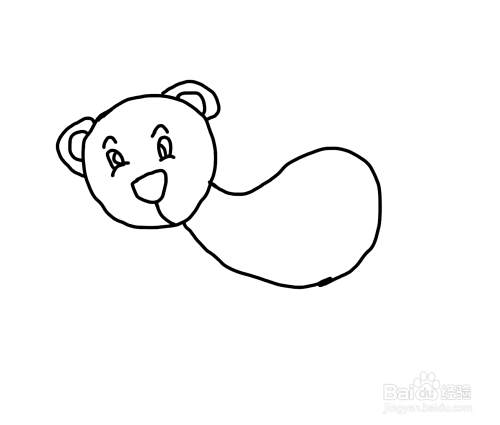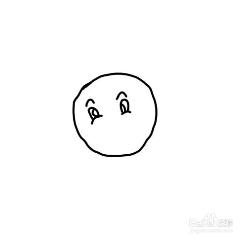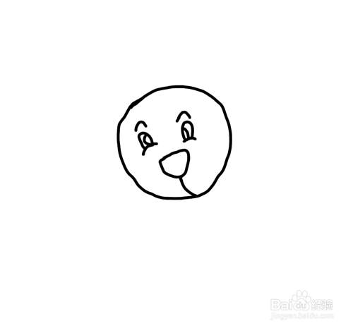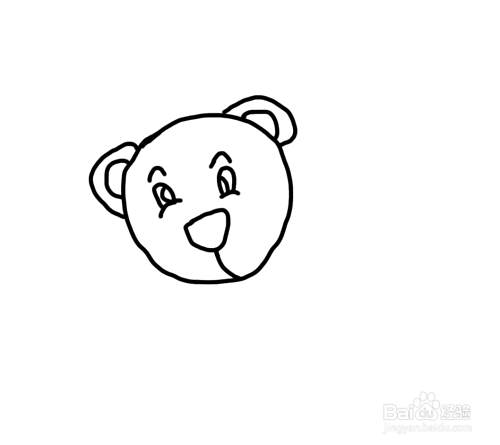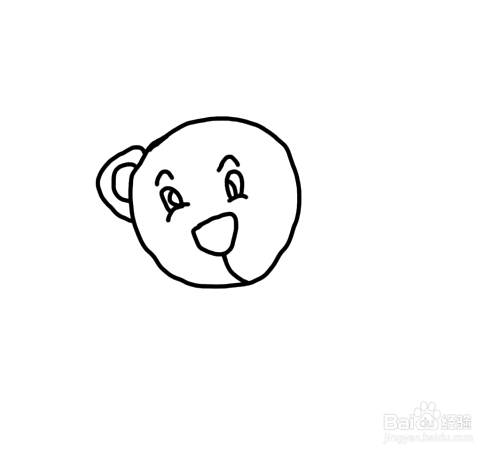 第三步,画好小豹子的眼睛、鼻子、嘴巴形状后,开始画出小豹子的左耳形状,再用同样的方法画出另一个耳朵形状。