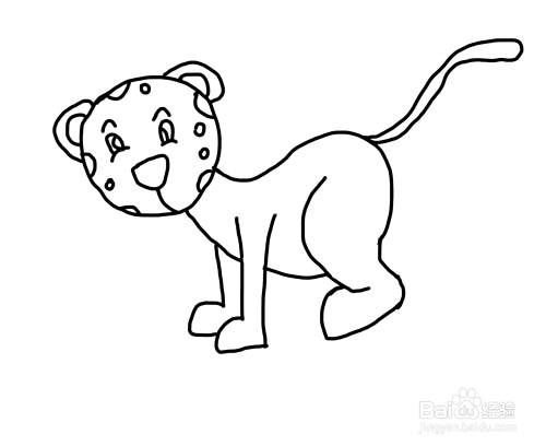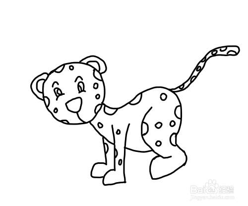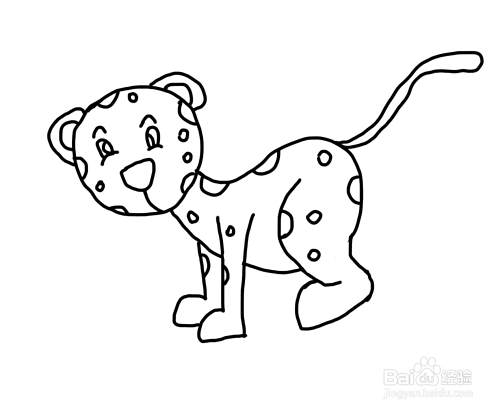 第六步,画完小豹子的所有外轮廓形状后,做一些简单的装饰,在小豹子的身上画一些小半点,当作它的花纹,更形象和可爱。