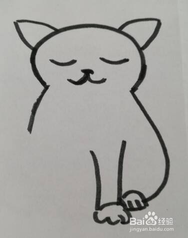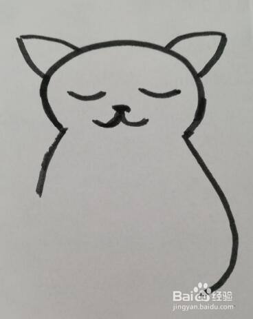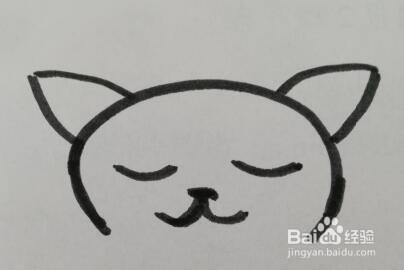 第二步,如图所示,画出小猫的耳朵和眼睛
