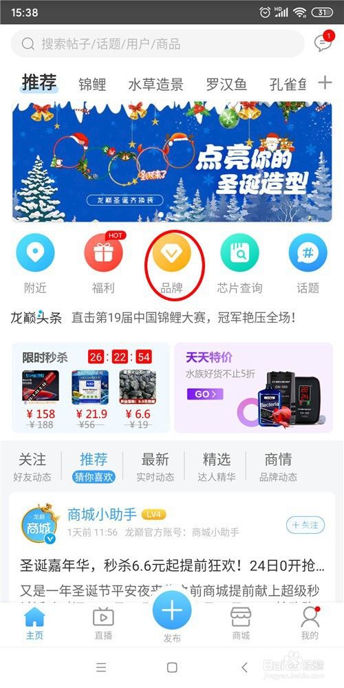 同时,也可在商家品牌圈中查询芯片,打开“龙巅”选择“品牌”进入品牌圈页面;