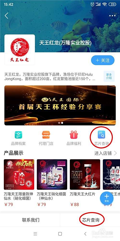 进入要查询芯片的品牌圈,点击芯片查询,即可。