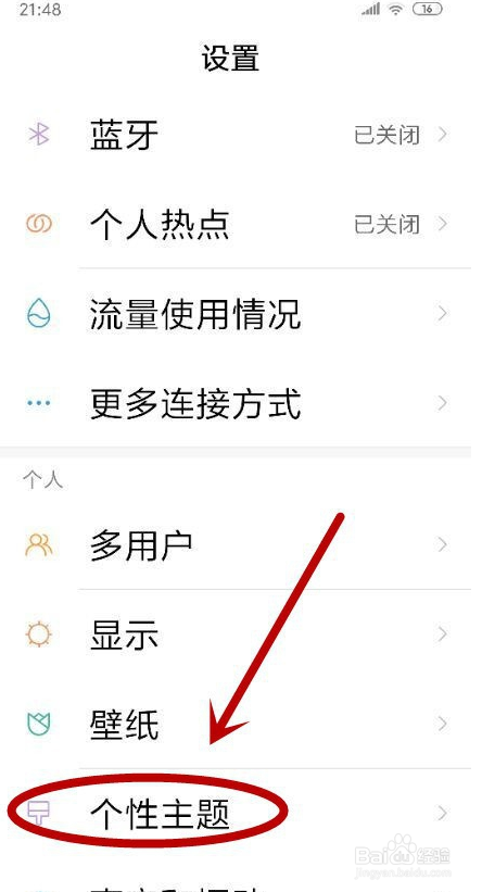 在“设置”页面找到“个性主题”单击