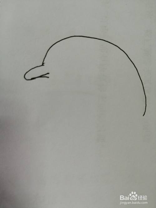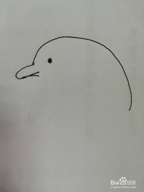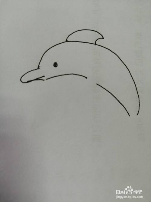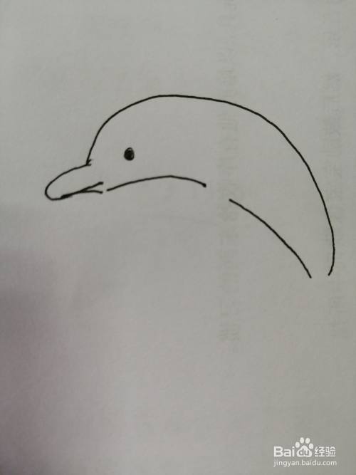 第二步,接着我们继续画出可爱的小海豚的头顶的弧线。