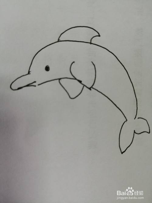 第五步,然后我们把小海豚的背上的鳍画出来。