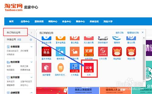 一、登陆淘宝卖家中心---我的服务,找到订购的火牛软件