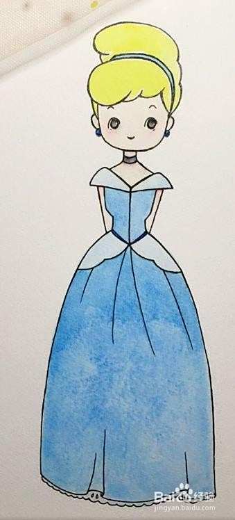 最后给灰姑娘上色,这样灰姑娘简笔画就完成啦!