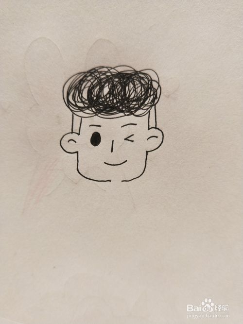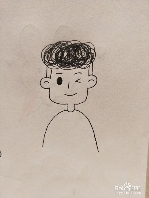 先用笔在纸上随意的打圈,乱乱的,画出小男孩的头发。