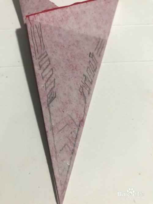 第五步 折叠好折痕之后 再在它下面的两旁双边上画上小麦纹样 还有它的叶子等等