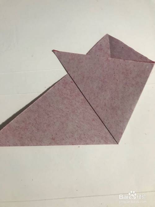 第三步 右下角向左上三分之一处折好之后 再拿起左下角向右上三分之一处折叠 然后左右调整一下 均匀地分成三等分