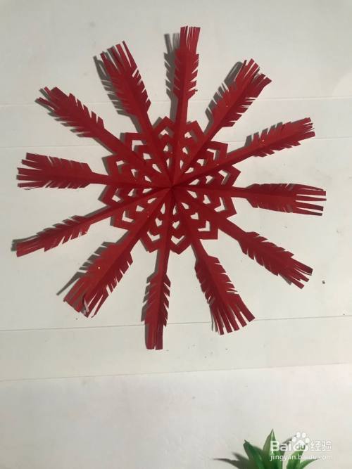 第七步 剪完外围多余的彩纸之后 再剪里面的细节部分 修边部分 还有其它涂实的部分等等 全部剪完之后 展开铺平一副漂亮的麦子纹样团花图案就裁剪完成了