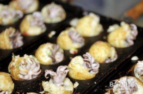 6.在每个章鱼烧上依次放入刚才的配料,用小火煎一会,用竹签将丸子翻面,多次之后丸子成型且上下金黄即可出锅。加上照烧汁沙拉酱/海苔碎,完工。