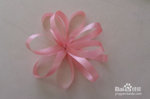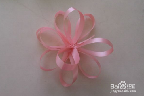 再接下来,咱们用手将丝带圈一一的展开,每一个丝带圈都 进行360°的旋转,逐渐的将10圈全部搞好,期间可以用细丝带进行固定线圈,然后在进行稍微的调整一下花瓣的位置,这样,一个简单的丝带花就做好啦!