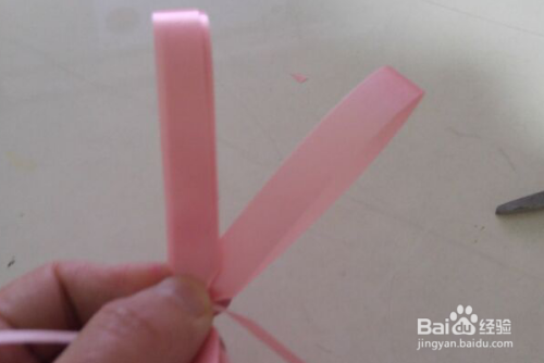 首先,我们将丝带剪成一个大约30厘米的小细条,这个小细条是为了扎花用的。