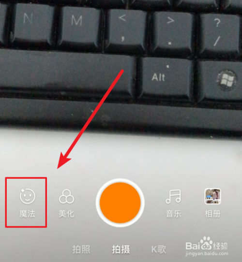 点击后,在拍摄界面,选择左下角的魔法图标,进入特效的选择界面。