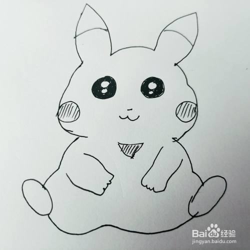 第四步,我们来画卡通皮卡丘的身体轮廓。