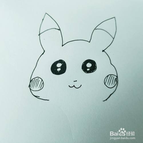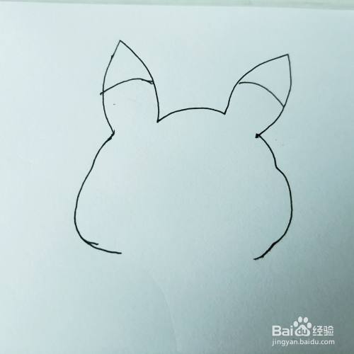 第二步,我们来画卡通皮卡丘的脸部轮廓。