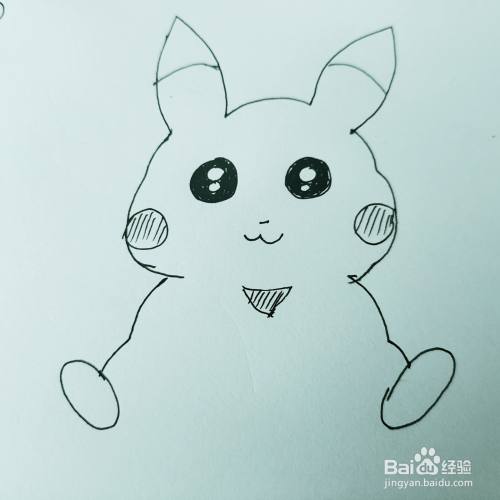 第五步,我们来画卡通皮卡丘的肢体细节,注意链接的吻合度,还有皮卡丘的尾巴。