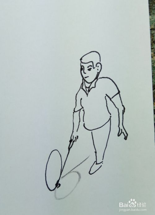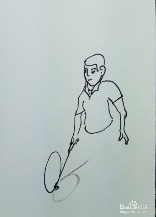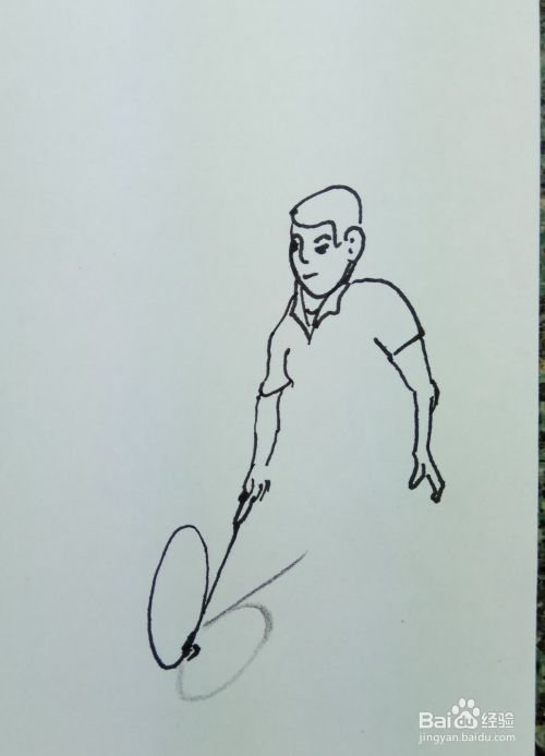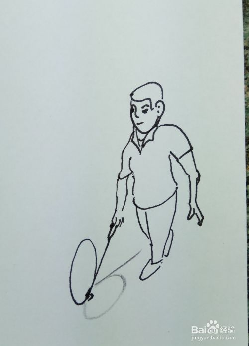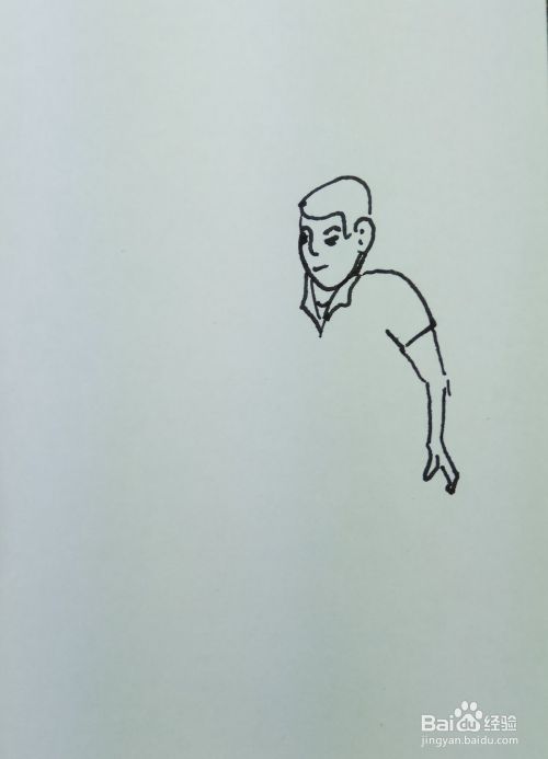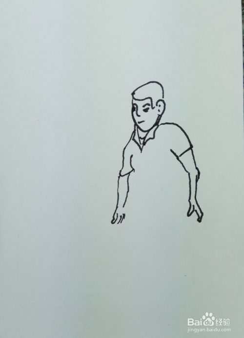 再用线条和曲线画出这个人的两个胳膊和他身上穿着短袖,要注意画出他两个胳膊的姿势。