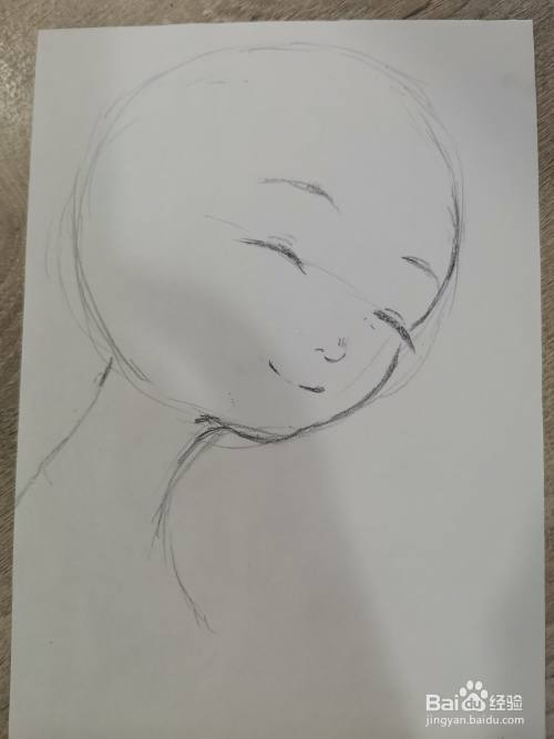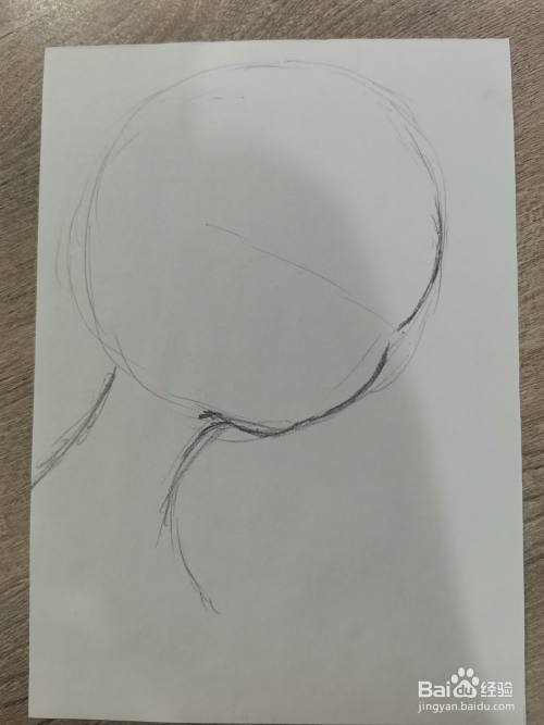 先用铅笔画一个圆作为头,再勾勒出脖子和肩膀的轮廓。