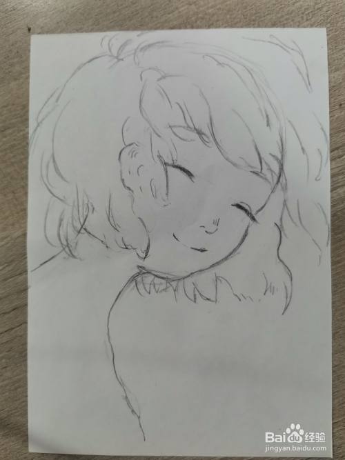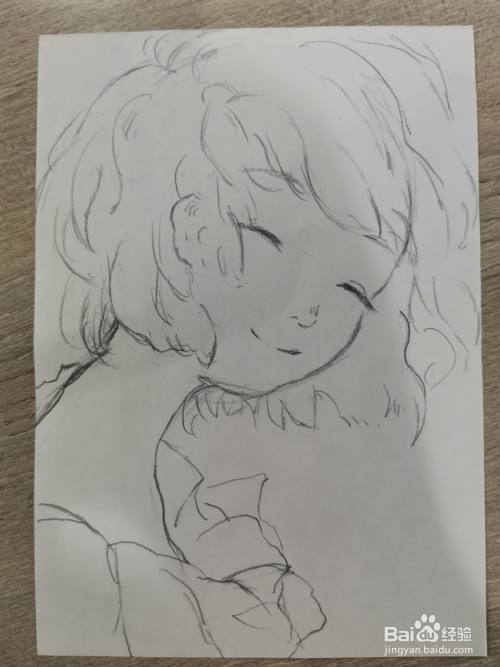 画出头发一组一组的走向,最后画出整个头发的轮廓。