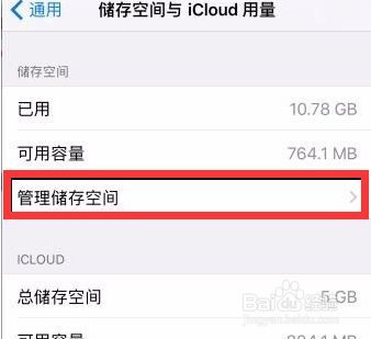 打开手机设置通用里的存储空间,选择“管理存储空间”。