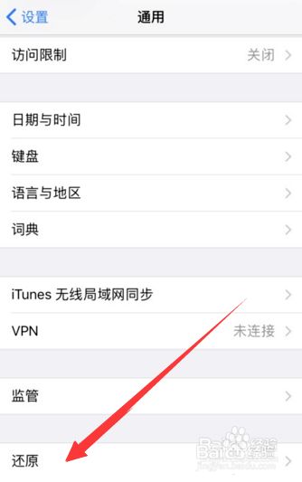 然后打开设置通用,找到还原。