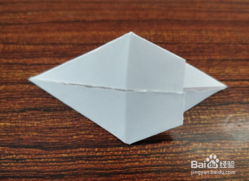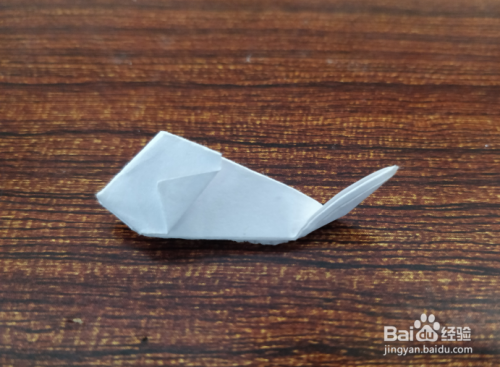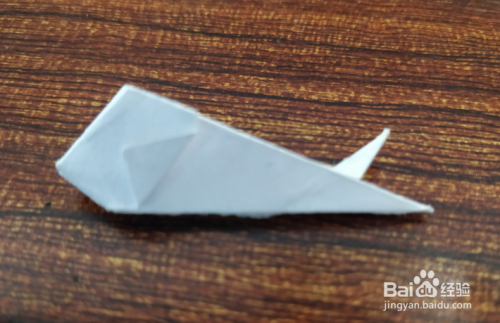 展开尾部的折痕,将尾部里面部分沿着折痕上提。