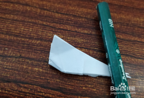 将直角三角形较大的锐角部分向外折叠,折的边与右边的露边平行。