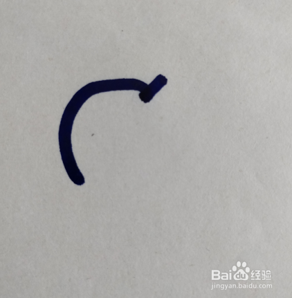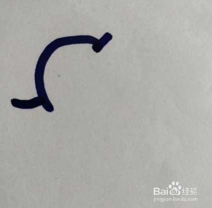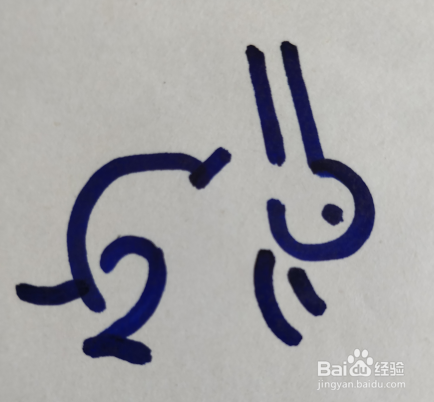 自右侧捺曲线下顶点向右引出一个开口左上的弧线,作为兔子的头。