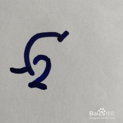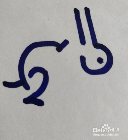 在弧线的右下位置,画上一个数字2曲线,作为兔子的后腿。