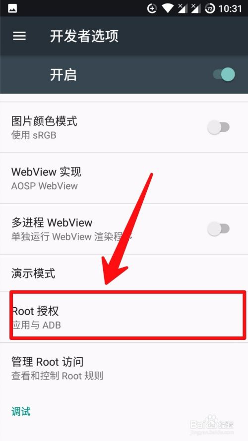 进入开发者选项后,在众多选项中找到“Root授权”,并点击它。