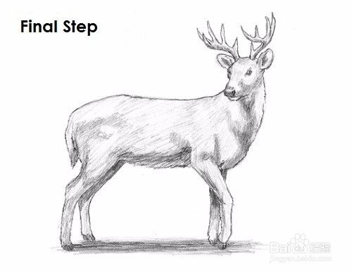 最后一步(可选):您可以添加一些阴影来为您的白尾鹿绘图提供更多尺寸和体积。在着色时选取光源的方向,以使阴影与其一致。阴影有助于定义肌肉并增加结构。使用引用尽可能准确是个好主意。在白尾鹿图下添加投影。这有助于地面鹿,因此它似乎不漂浮。