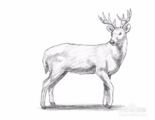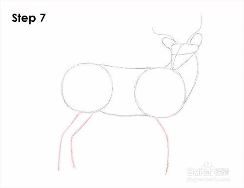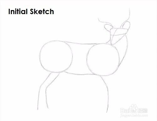 第七步:在白尾鹿的身体下画出三条曲线作为腿的导向。