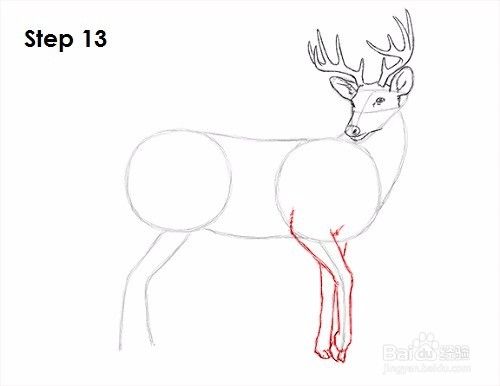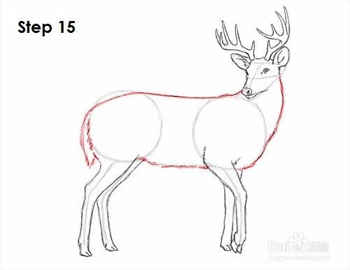 步骤15:使用指南画出鹿的身体和尾巴的其余部分。