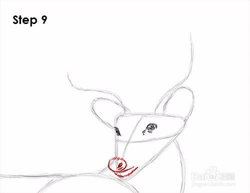 第9步:在三角形的左下角绘制枪口。鹿的鼻子在底部弯曲,在皮毛的顶部有短而快的动作。在它内部的小形状中为鼻孔着色。嘴巴是鼻子正下方的一条线。鹿的下巴是嘴下的曲线。