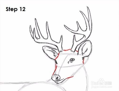 第11步:使用初始指南作为绘制鹿鹿角的基础。最初的线条作为鹿角的底部,所以只需在顶部画几个尖刺。这是一个好主意,请参考一下鹿的鹿角形状。用相同的方法绘制正确的鹿角,除了使曲线更多一点。慢慢绘制并暂停视频以获得鹿鹿角的正确形状。