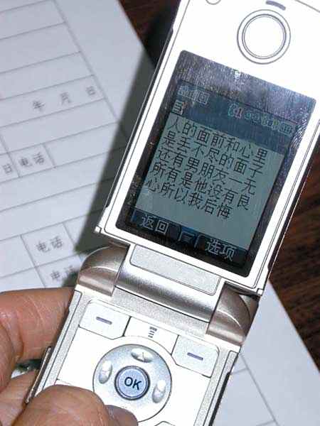 8他手机通讯录里的另一个女朋友,从来不用真名,用的是老大之类的代称,当偶尔发现一次她们的短信时(两年多里我就发现了一次,那会短信里有亲亲之类的话),他会解释为,那是他大学宿舍同学,喜欢开玩笑,并且表现特别不高兴的样子,说:你怎么乱翻我短信?这样反过来我不仅不会再问什么,到要因看他短信而给他道歉。END