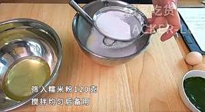 筛入糯米粉120克,搅拌均匀后备用。