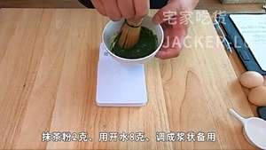 首先我们把抹茶粉2克用开水8克调成浆状备用。