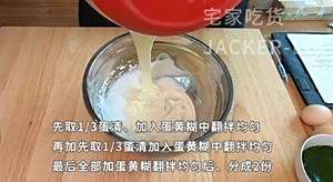 最后全部加蛋黄煳中翻拌均匀、分成2份。