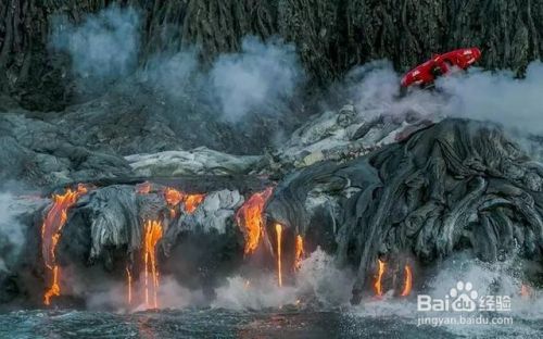 夏威夷考艾岛基拉韦厄火山。形成于约60万年前,最近一次喷发于1983年,历史上火山灰最高的一次火山喷发,并形成了195多平方公里的土地。水面周围的岩浆温度高达1093℃。