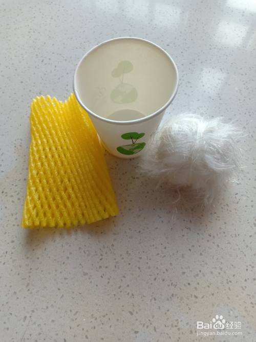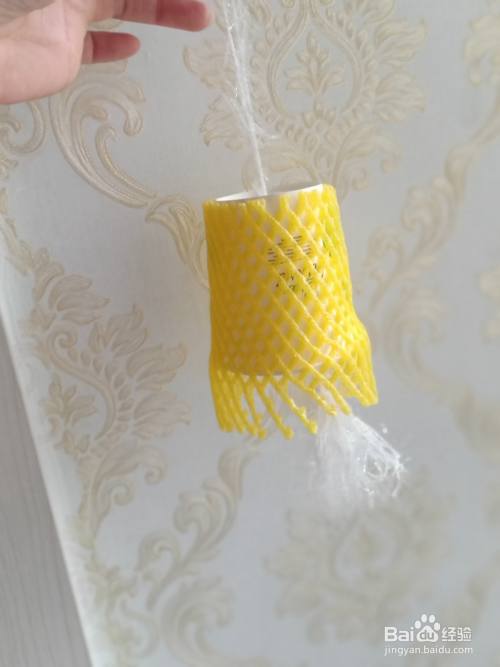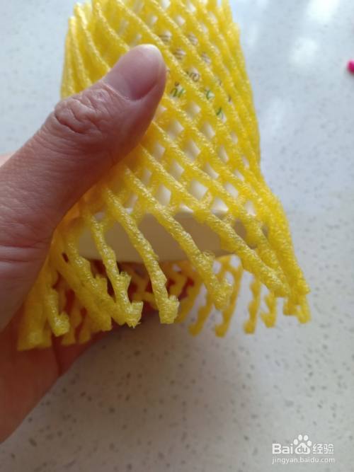 接着将【泡沫网】套在上面,再用剪刀修剪成【如图形状】。
